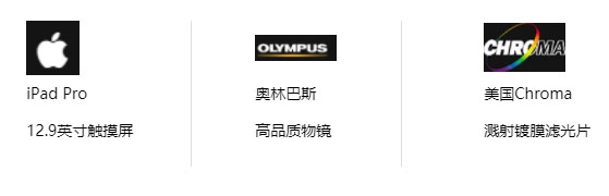 双相机:BF: 1200万像素CMOS彩色相机,FL : 500万像素sCMOS单色相机