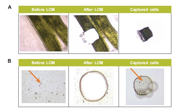 图2. 激光捕获显微切割的新兴应用领域:植物生物学、法医学。