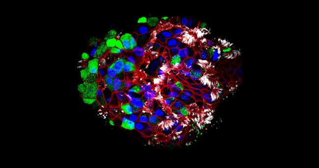 LSM 910超分辨率成像对人来源肺部类器官成像,由美国斯坦福大学医学系血液科 C. Kuo 教授提供。