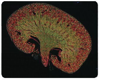 小鼠肾脏,10X荧光成像,9X7视野拼接图像
