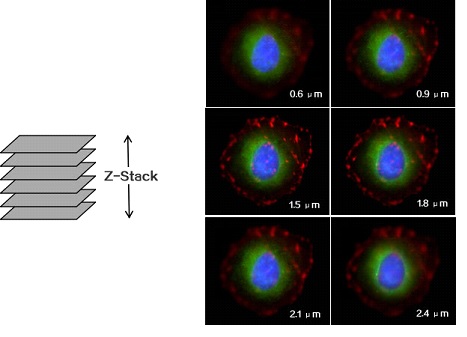 • Z-层叠可以显示标准宽场显微镜下无法观察到的细胞形态变化