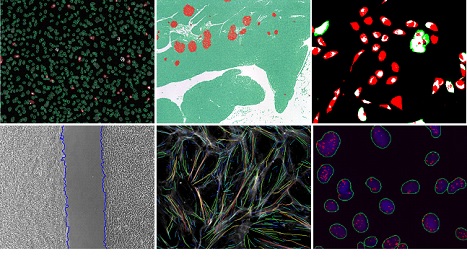 左上:活死细胞分析;中上:组织切片定量分析;右上:共定位分析